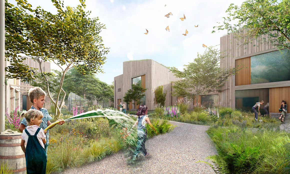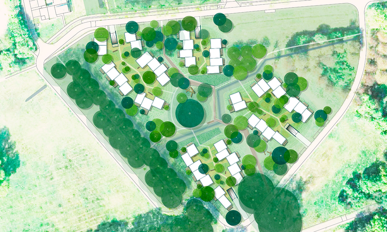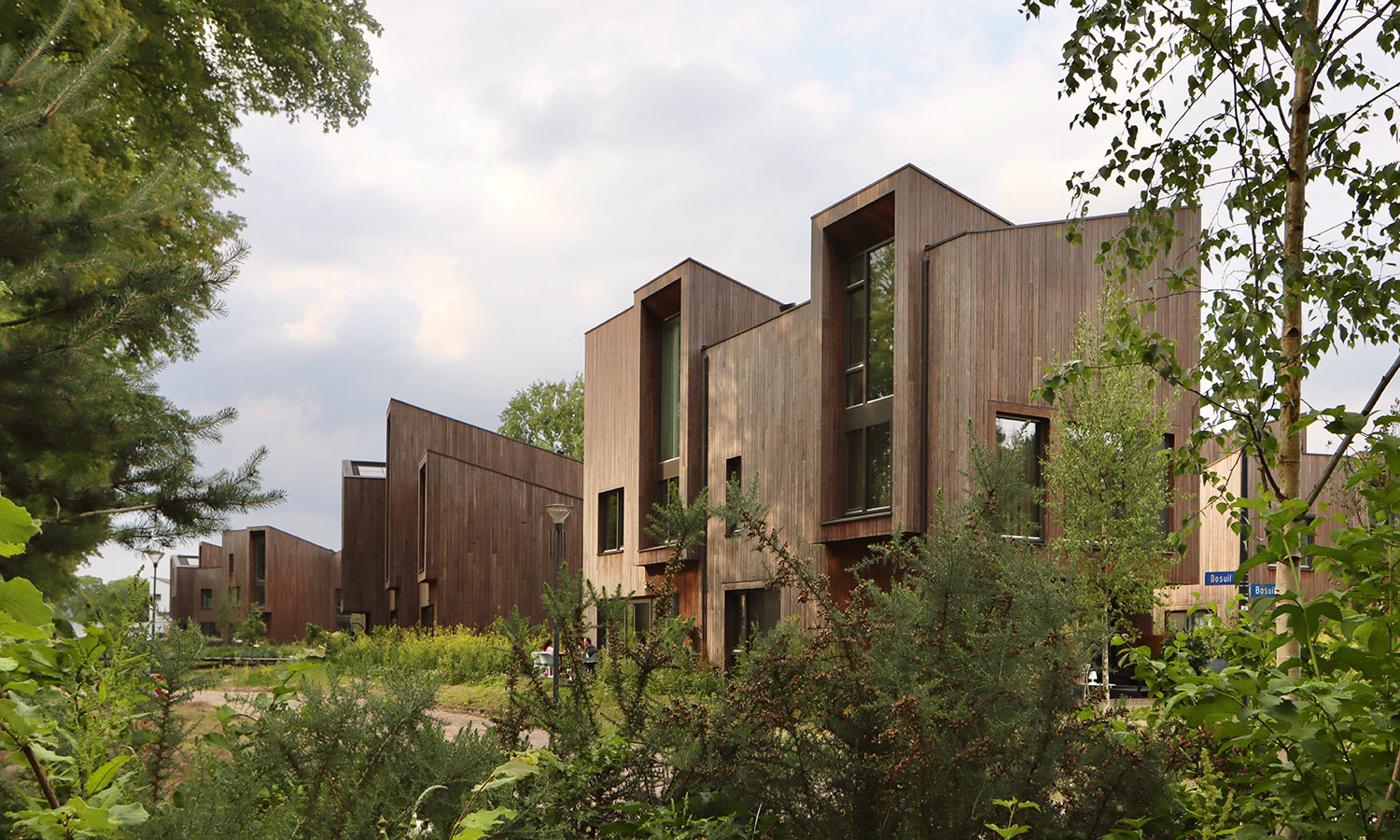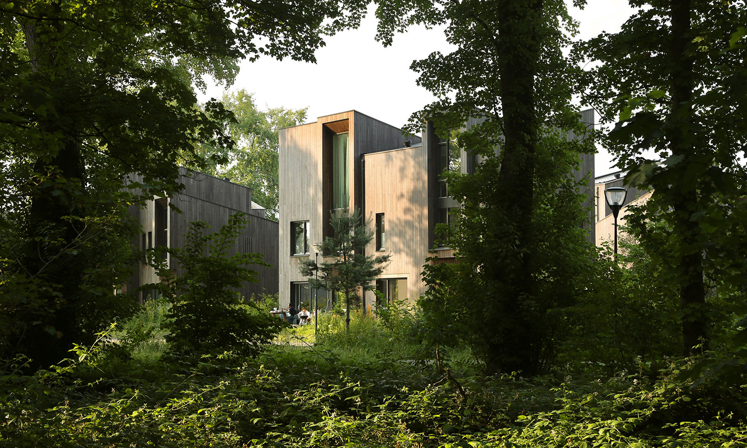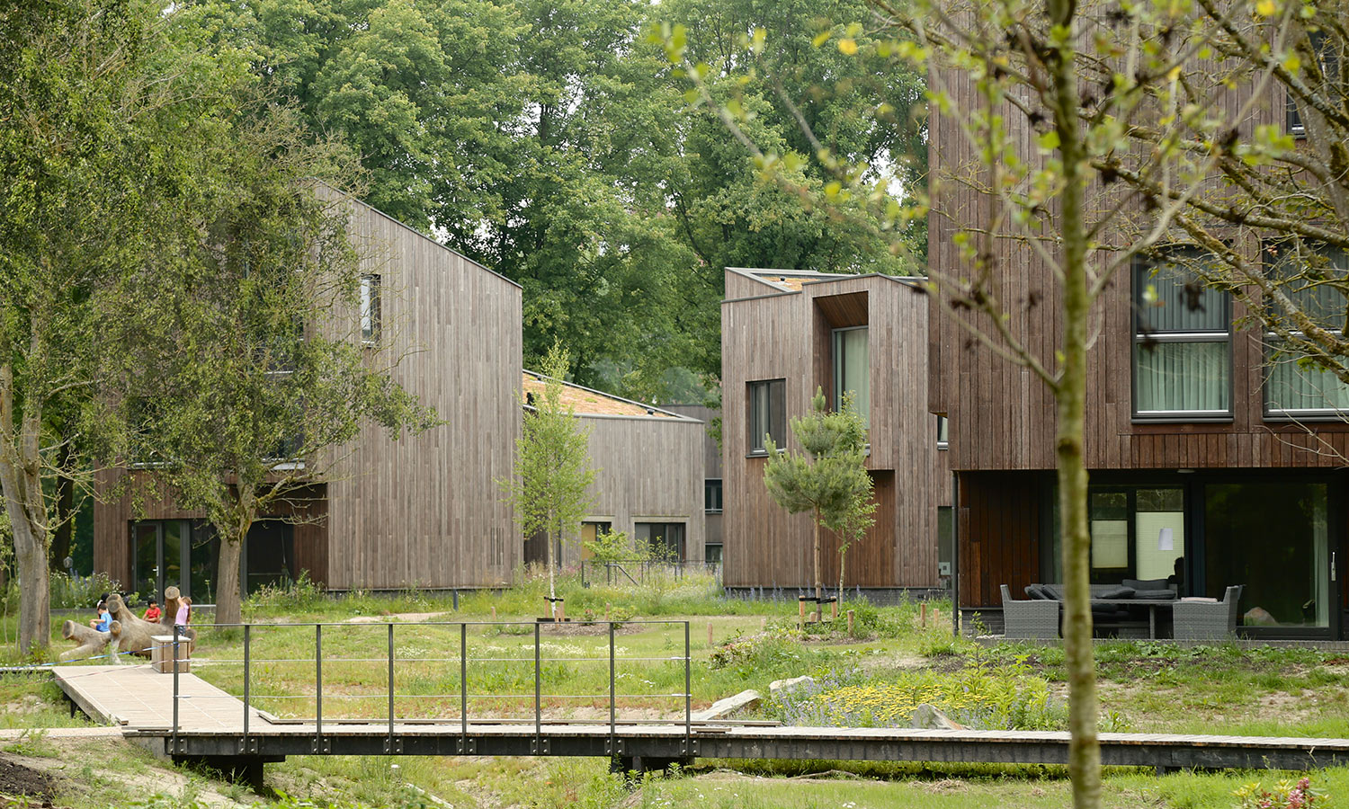 Het stedenbouwkundig ontwerp werkt een aangenaam microklimaat in de hand. Doordat de woningen afwisselende geplaatst zijn, is voorkomen dat gesloten gevels veel warmte opnemen. Het gevarieerde daklandschap voorkomt hinder van wind, en het omliggende bos zorgt voor verkoeling. De woningen zijn grotendeels gebouwd met natuurlijke en circulaire materialen. Ze hebben een herkenbare architectuur, al is elk huis net even anders doordat op subtiele wijze gevarieerd is met hoogte, oriëntatie en vorm. Gevelbankjes, een natuurspeelplaats, een buurttafel bij de waterloop en openslaande deuren zorgen dat bewoners elkaar treffen, voor een praatje, een helpende hand of een buurtbarbecue.